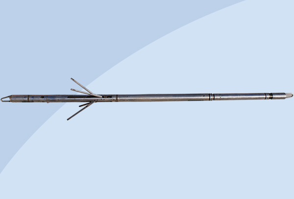 液壓推靠器配接能譜密度與微球復(fù)合探頭,使其貼靠井壁以滿足測(cè)…